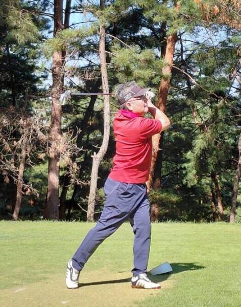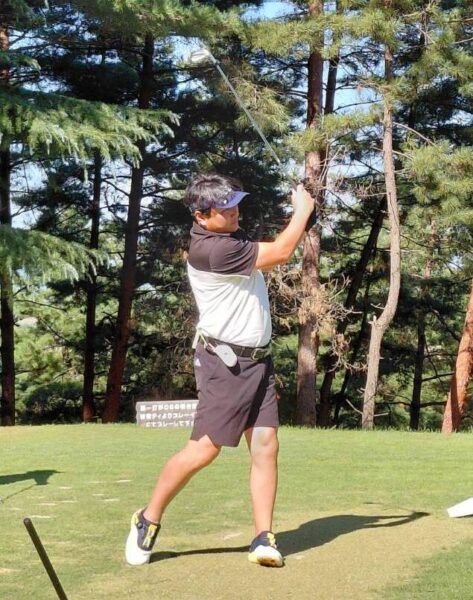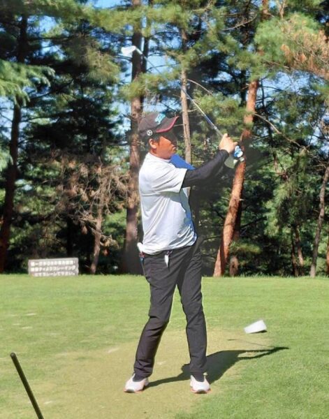 〇1組目のティーショット 天木正史さんは理想的なフィニッシュの形です!