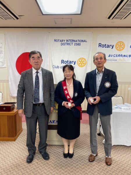10月25日 RI会長代理ご夫妻歓迎晩餐会(小野和英会長、水澤貴洋幹事、山﨑堅輔さん)