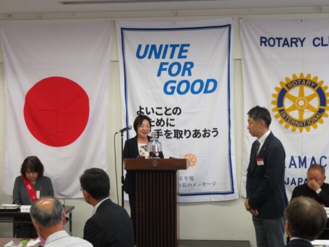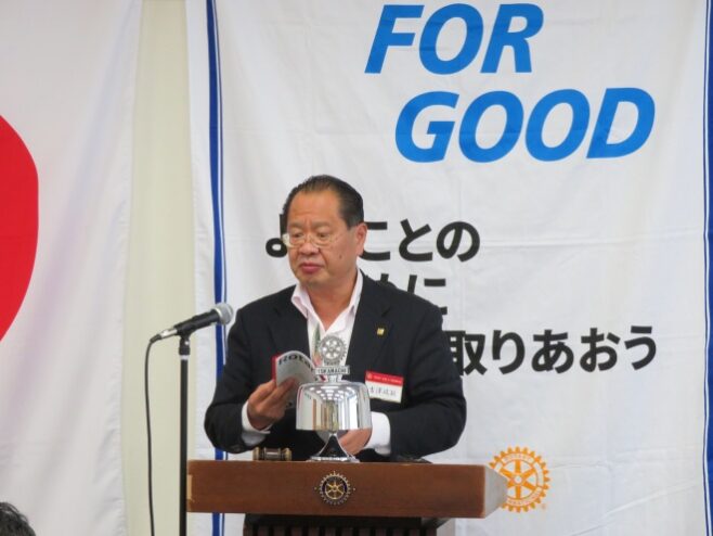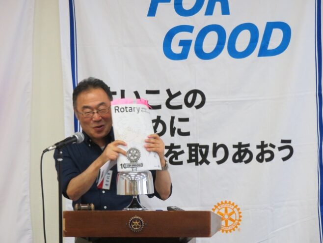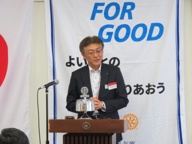 原山70周年実行委員長より委員会招集の連絡、吉澤直前会長よりRI国際大会へ向けて報告がありました。