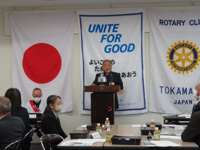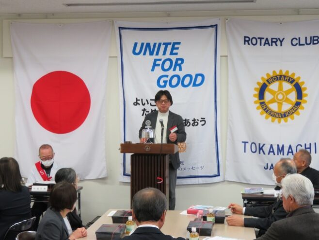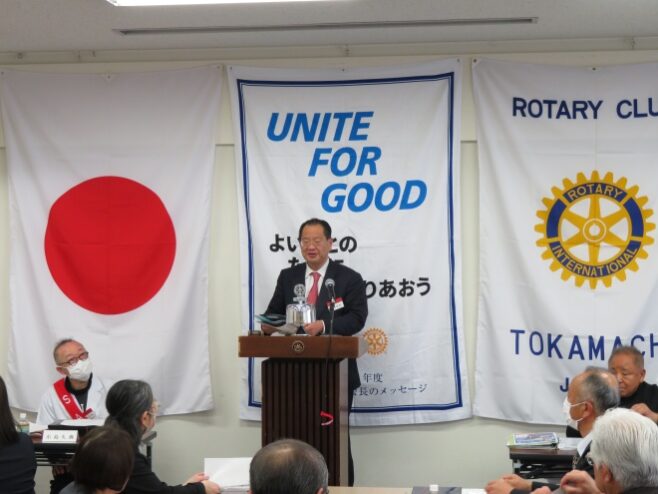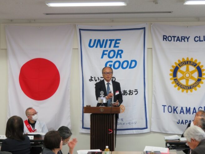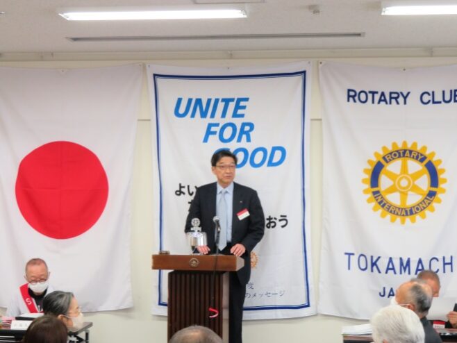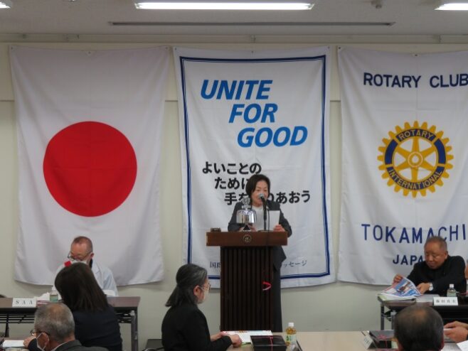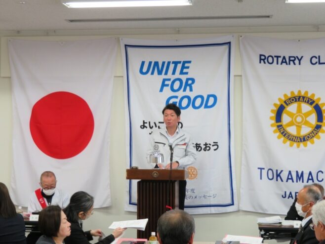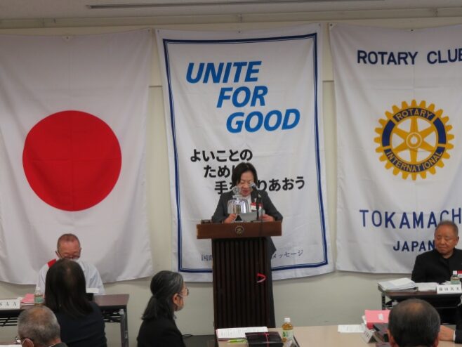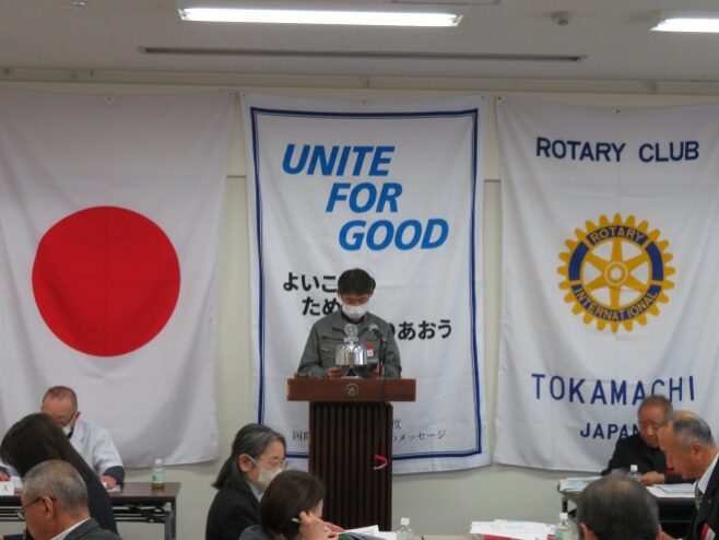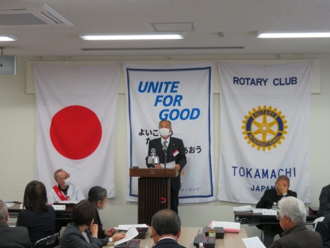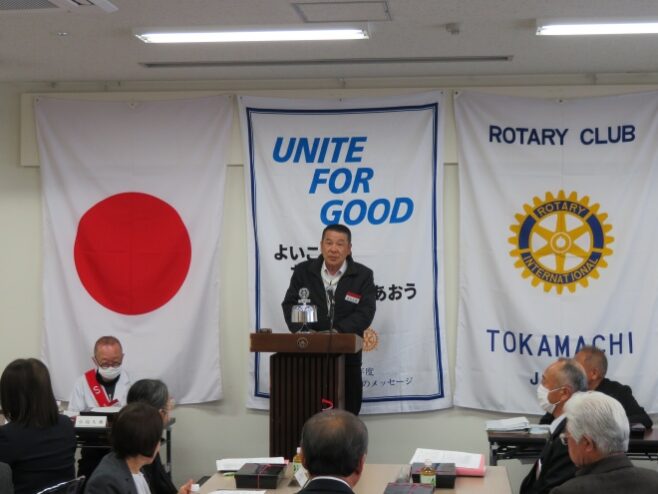 例会は、藤田会長より会長スピーチ、出席報告、理事会報告、幹事報告、ニコニコボックス報告がありました。