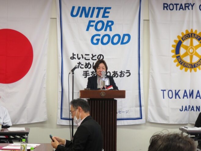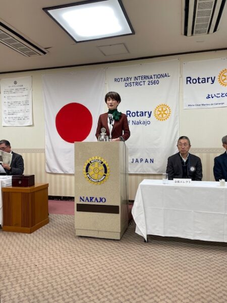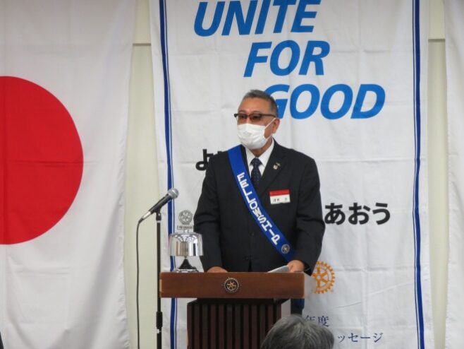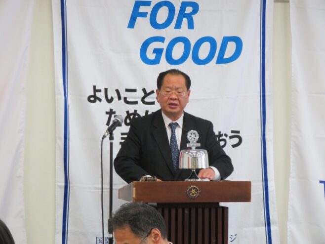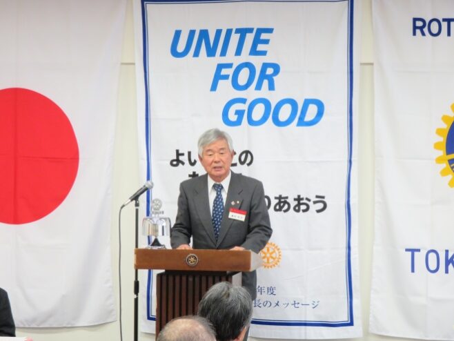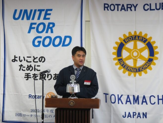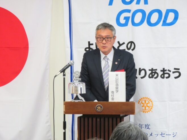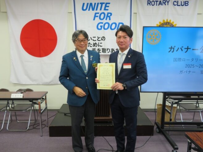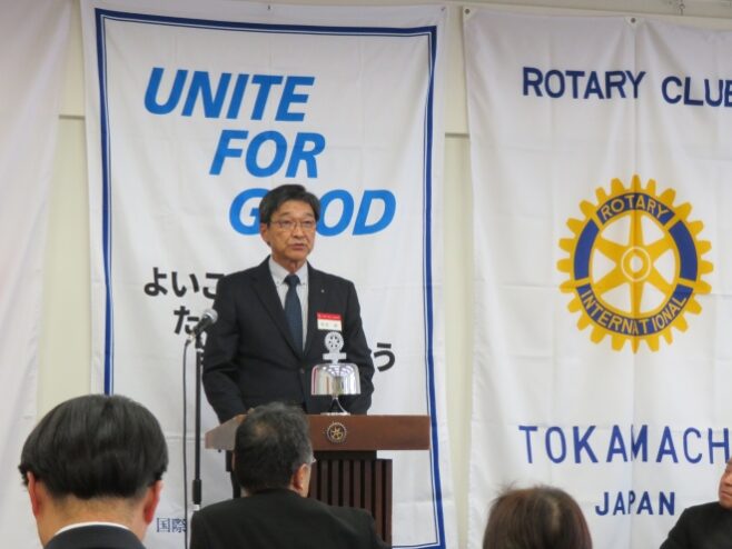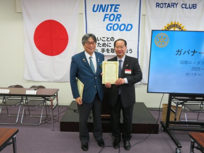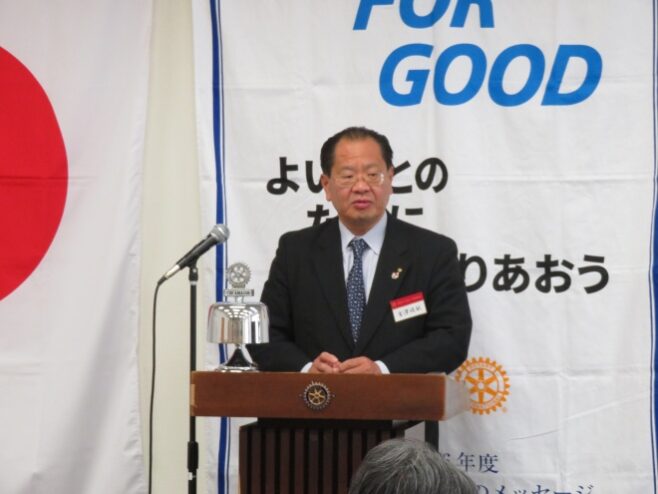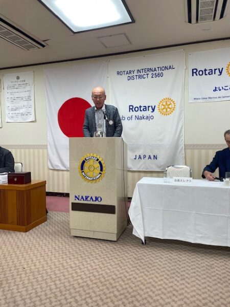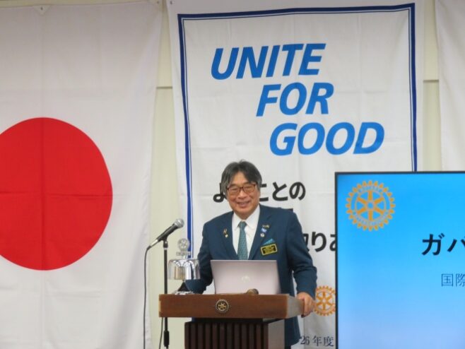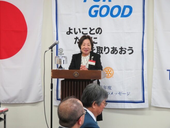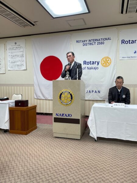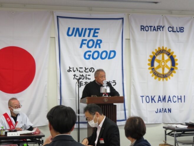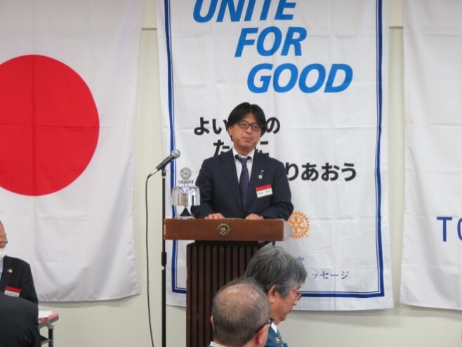 その後、室賀ガバナー公式訪問が開催されました。ガバナーより国際ロータリーの方針や地区の方針についてお話をいただき、会場は終始深い学びの空気に包まれていました。