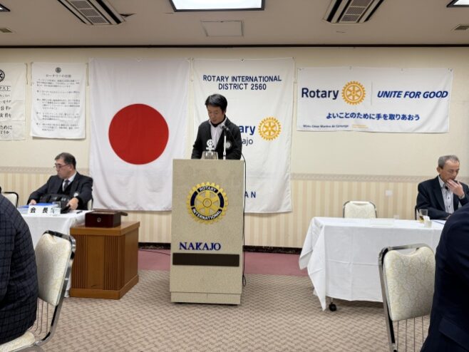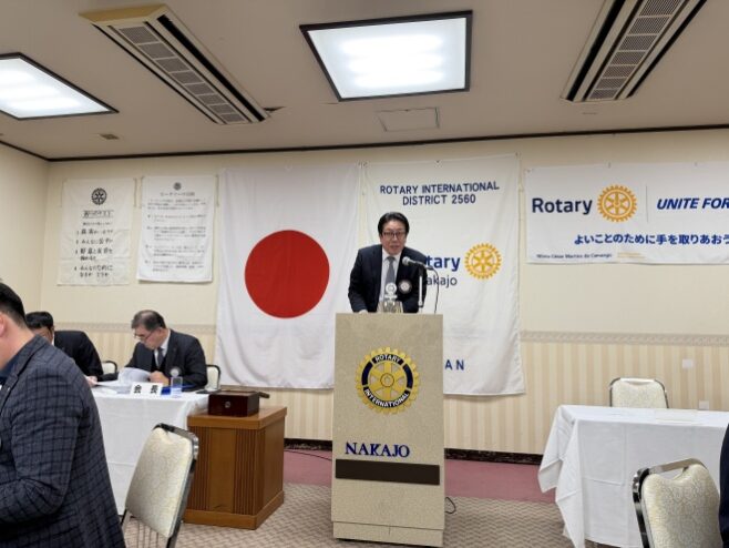 ・今年は巳年でした。巳年は蛇が脱皮するように新しいものへ挑戦する年、努力が実を結び成長や変革が期待できると云われています。残り1週間となりましたが、皆さんにとってどのような一年だったでしょうか。来年は午年です。干支としては十二支が一般的に知られていますが、本来は十干十二支で60種類あり、これが一巡すると「還暦」と呼ばれます。暦が還るという意味で、新たな一年を迎える節目とされております。私自身も8年前に還暦祝いを家族にしてもらい、その後、高校や中学校の同窓会で還暦祝いの幹事を務める機会がありました。幹事の役割は思いの外プレッシャーもありましたが、今となっては良い経験だったと感じています。午年は力強い年とされる一方で、勢いが強過ぎると制御が必要になるとも言われます。来年還暦を迎えられる方も、周囲の助言を受けながら、良い一年を過ごして頂ければ良いと思います。今年度も残り僅かとなりましたが2025年、そして新たな2026年に向け、皆さまが健康で良い年を迎えられることを祈念し、会長挨拶とさせていただきます。本日はクラブ協議会です。どうぞよろしくお願いいたします。