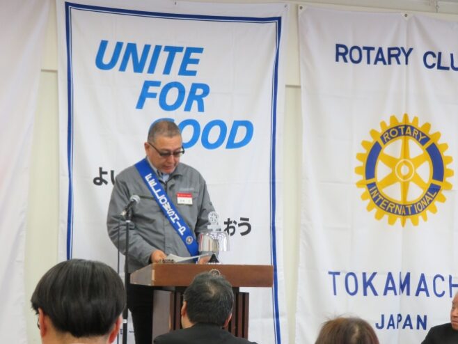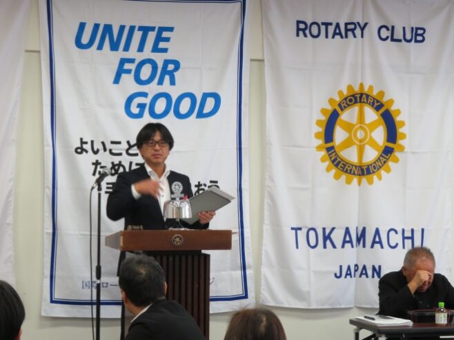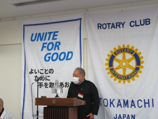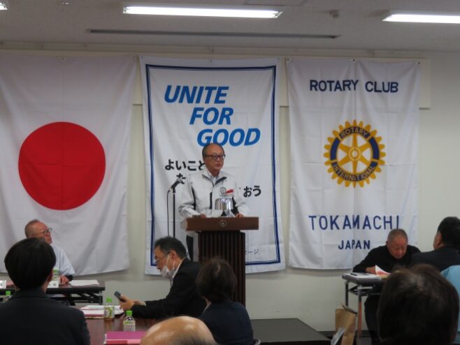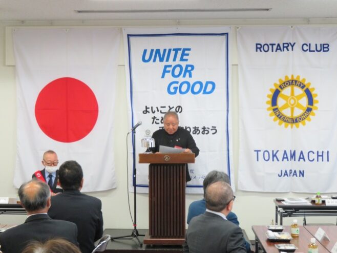 例会は、藤田会長より会長スピーチ、そして、出席報告、幹事報告、ニコニコボックス報告がありました。その後、吉澤友好クラブ委員長より報告がありました。