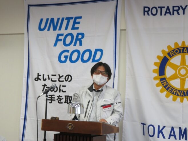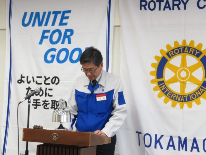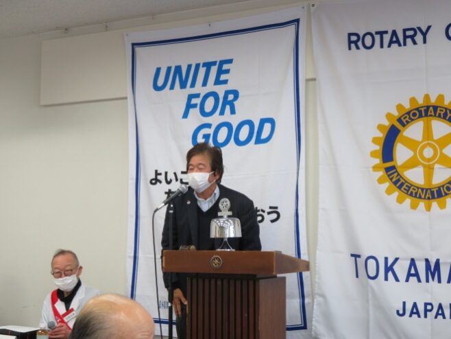 続いて、原田諮問委員長より連絡、財団委員会の上村君より米山奨学についての連絡、吉澤直前会長よりRI国際大会(台北)参加について説明、古澤職業奉仕委員長から本日の職場訪問のご案内がありました。