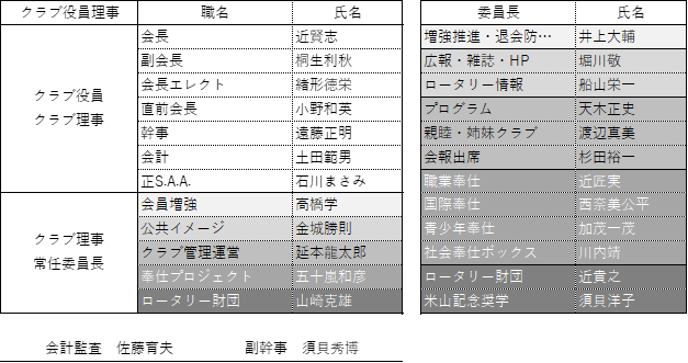・2026-2027年度のクラブ役員、クラブ理事と所属委員会の名簿を報告いたします。