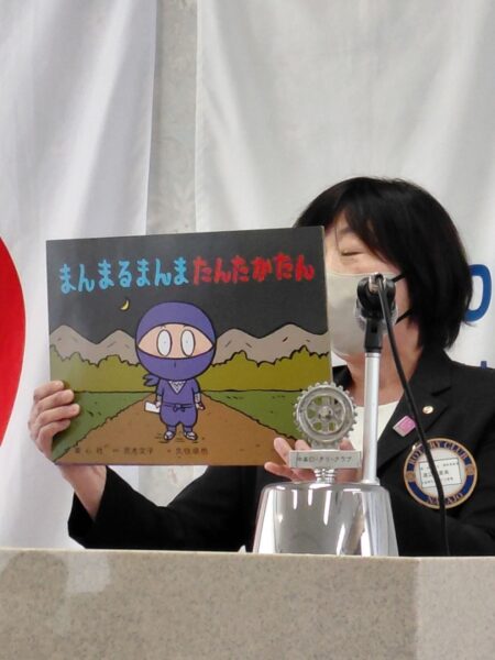 私の人生は年相応に年齢を積み重ねてきましたが、その中で2020年から始めたボランティア活動について話します。2020年秋から中条グランドホテルの池田さんの紹介で、中条小学校で本や絵本の読み聞かせのボランティア活動をしています。延本龍太郎さんの奥さまが地域コーディネーター(地域学校協働活動推進員)をしています。この方々に支えられながら現在までボランティア活動を続けることができています。これはRCに入会してから始めたことですが、RCで様々なボランティアの勉強とか体験を活かして、飛び込むことができました。今日は皆さんにボランティア活動の読み聞かせの中で紙芝居を実演します。