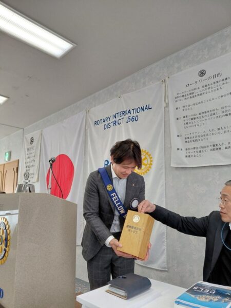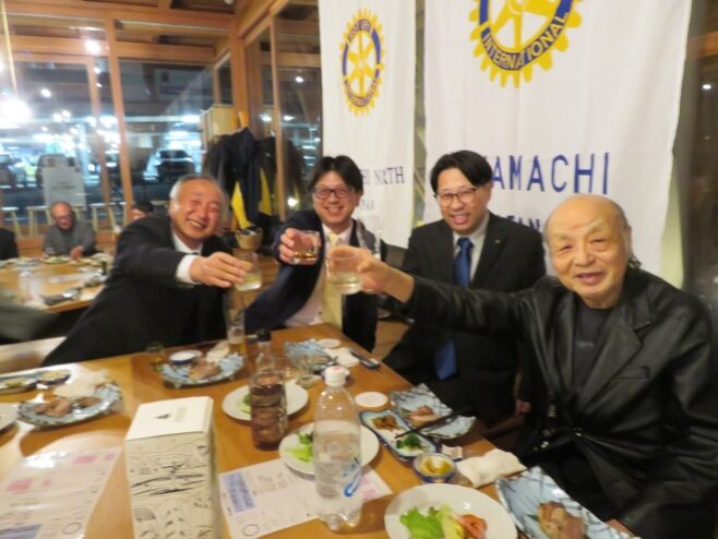 藤田会長挨拶、十日町北ロータリー池田会長の乾杯、ニコニコボックスなどがありました。